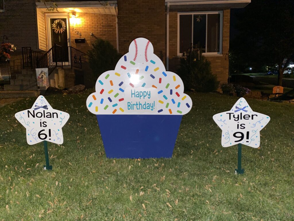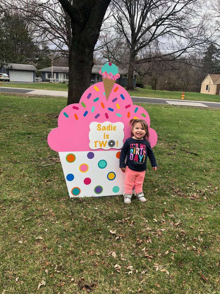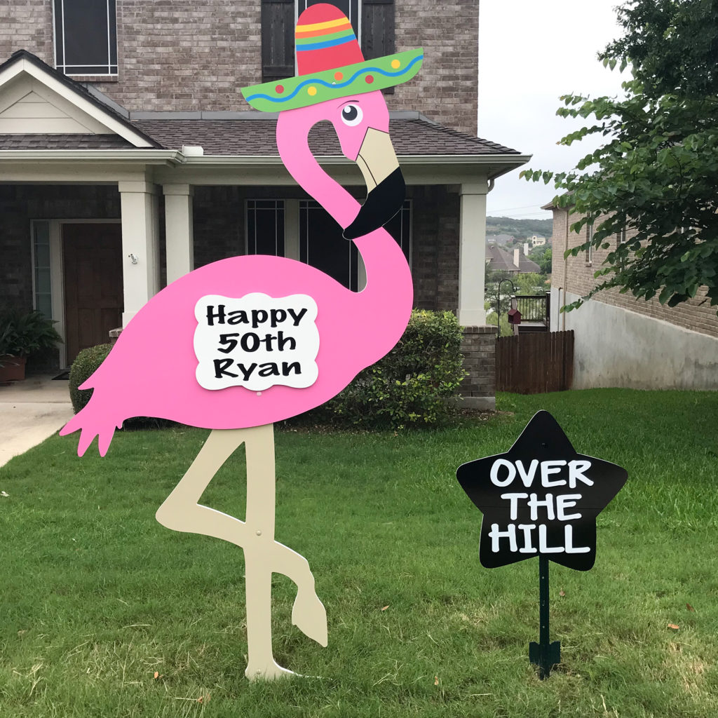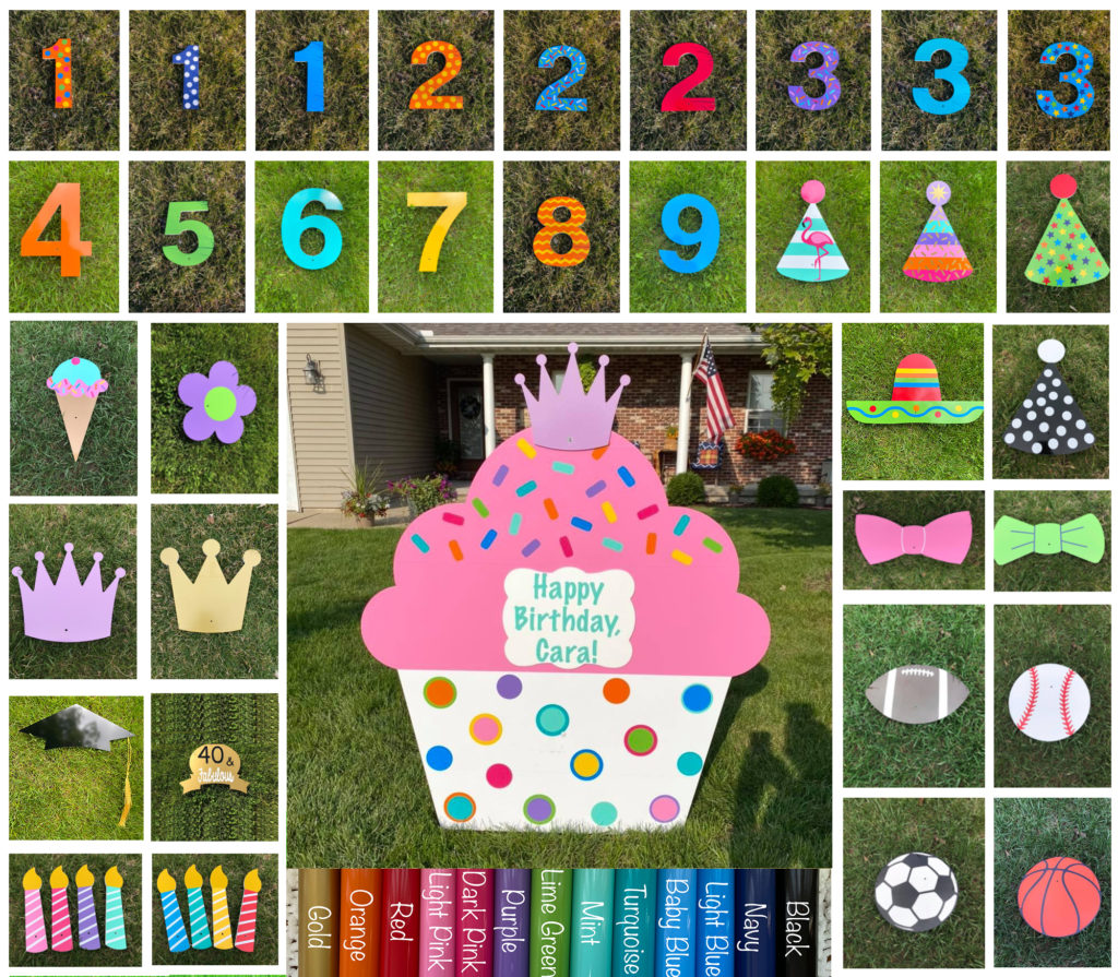 Our cupcake and flamingo signs are an over-sized, unique way to celebrate someone special! Special occasions are endless. Think about a baby’s 1st birthday, your grandmother’s 90th, milestone birthdays like 13th (Thirteenth), Sweet 16, 18th (Eighteenth), 21st (Twenty-First), 30th (Thirtieth), 40th (Fortieth), 50th (Fiftieth), 60th (Sixtieth), 70th (Seventieth), 80th (Eightieth), 90th (Ninetieth) and 100th (One Hundredth), over the hill or any number, all birthdays are important! Cupcakes can also be used for retirements, anniversaries, employee of the month, engagements, a bride to be and anything worth celebrating!